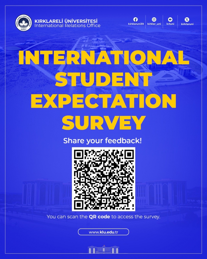 The International Relations Office of Kırklareli University has launched the “International Student Expectation Survey” to identify the expectations and needs of our international students at the beginning of the semester.